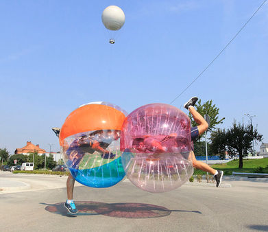 充滿氣的泡泡裝外型可愛搞笑,且能保護參加者衝撞、滾動甚至反轉!可以放心盡力入球!