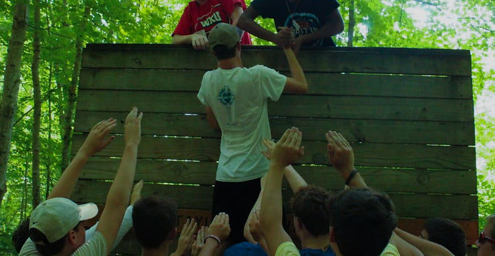 互相協商,定立策略,齊心合力把隊友推上高牆之上,交給高牆上的隊友拉上去。